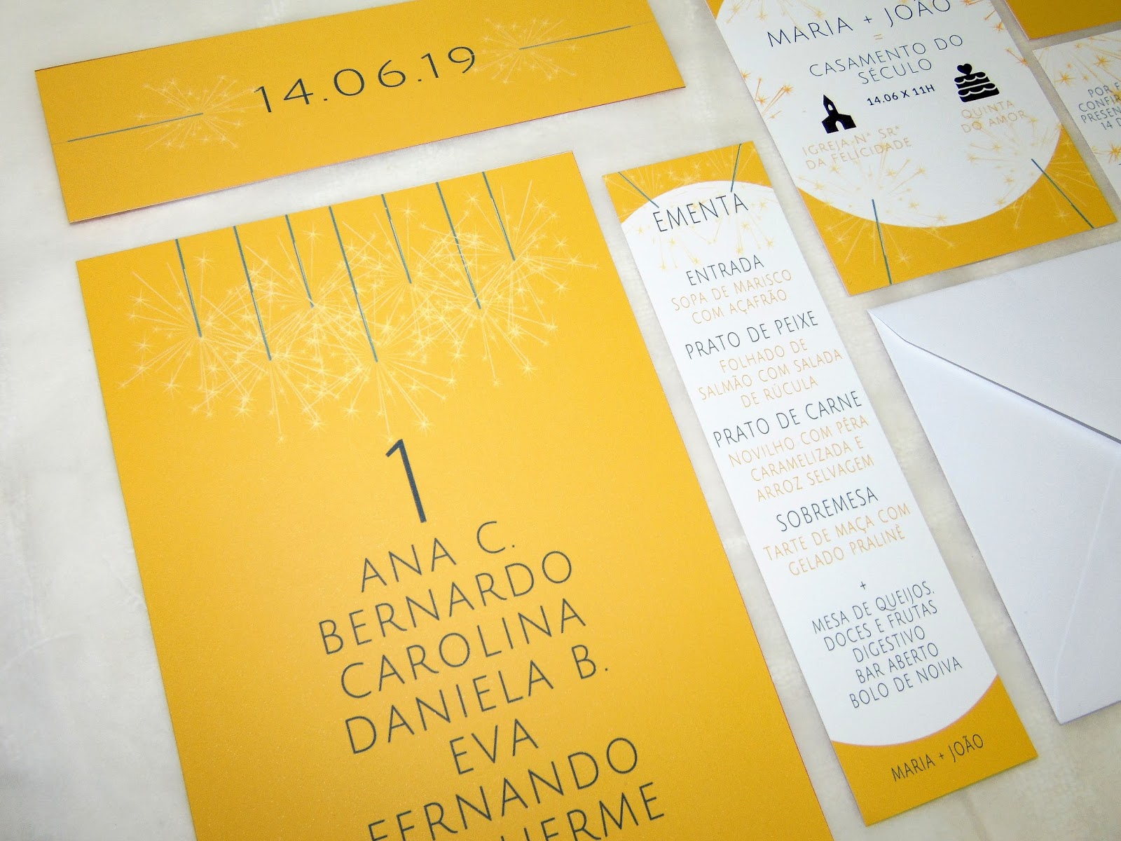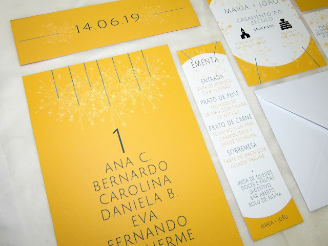 - Marcador de Mesa: Na designação da mesa o cliente pode optar entre números ou nomes (p.e. nos casos em que existe um tema de casamento). Pode também optar por marcadores apenas com o número/nome e sem os nomes dos convidados;