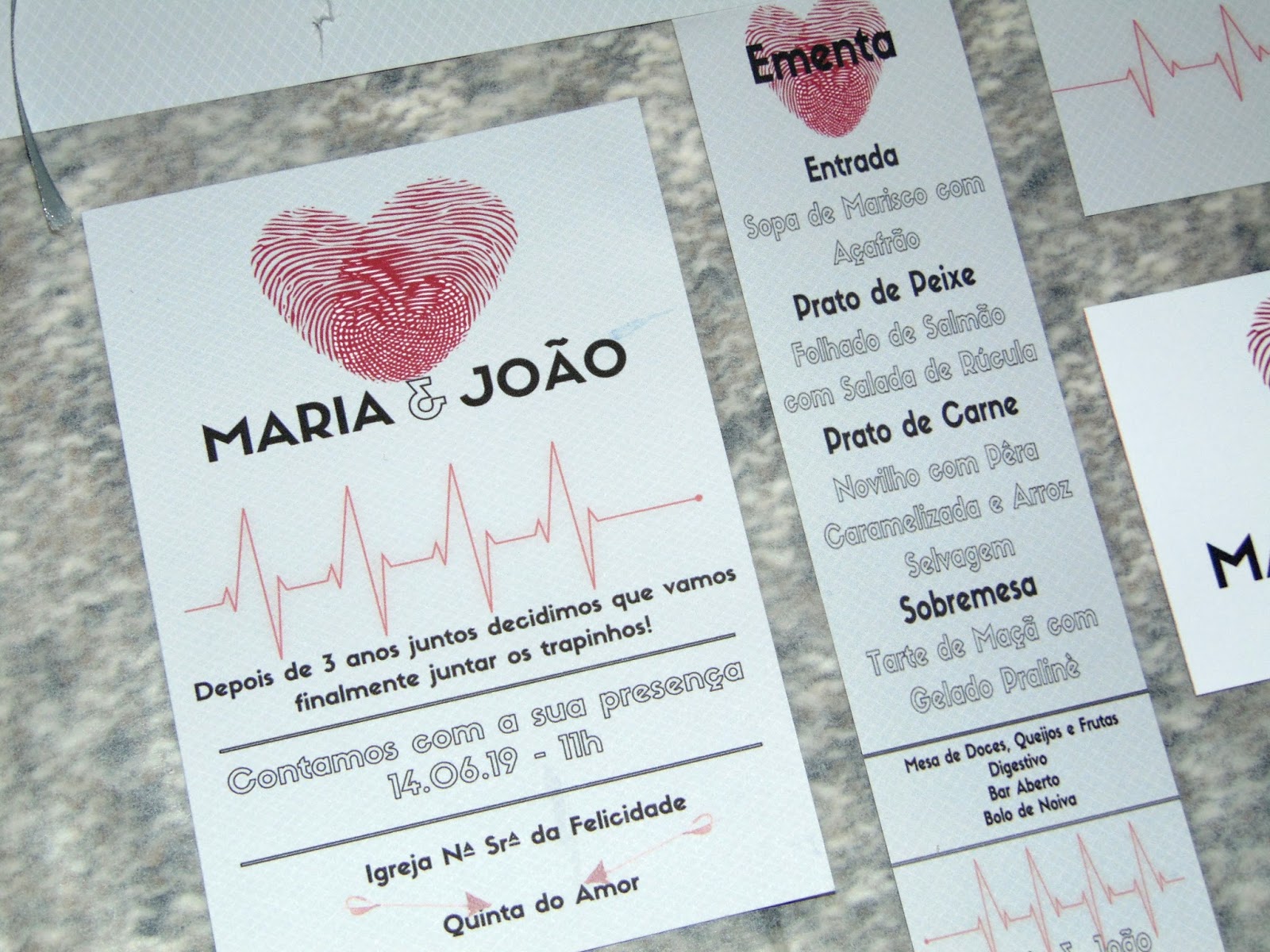 - Marcador de Mesa: Na designação da mesa o cliente pode optar entre números ou nomes (p.e. nos casos em que existe um tema de casamento). Pode também optar por marcadores apenas com o número/nome e sem os nomes dos convidados.